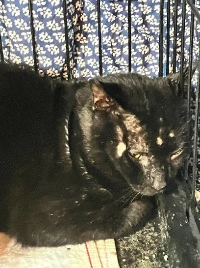 Popcorn was part of a feral colony and was found one day with a large gash on the side of his face. A local rescue took him in and they reached out for help.
