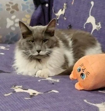 Oreo Cheesecake was rescued from a crack house and had been exposed to secondhand crack smoke. Her rescuers fought hard to save her and get her healthy again. She’s funny and adorable but she can have major cattitude; especially if you are another cat!